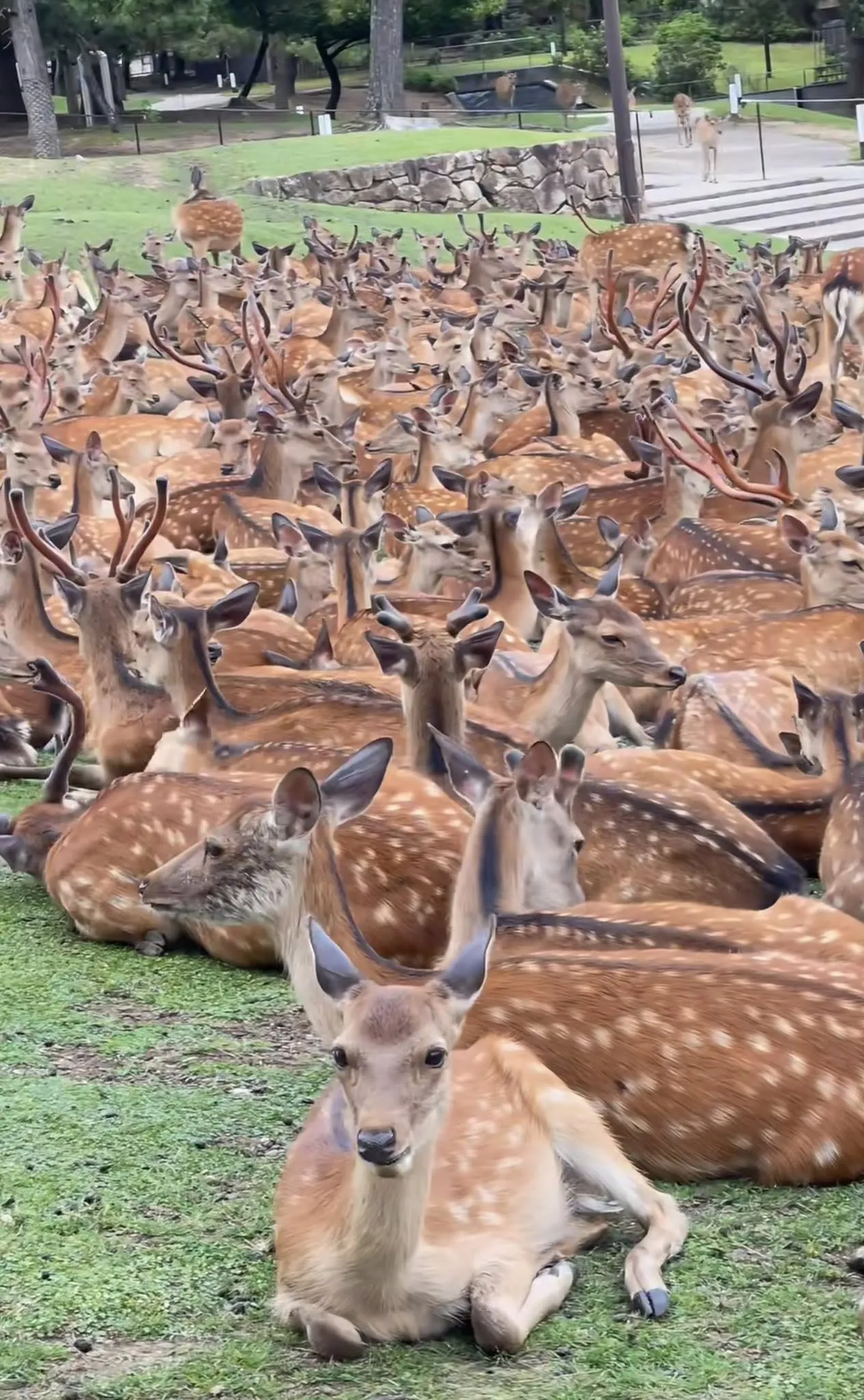 我們包車剛到,鹿就像明星一樣登場✨ 冬天太冷擠在一起取暖,我能理解。